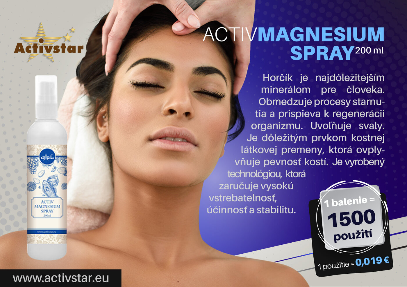 Activmagnezium vo forme spreju má jednoduché použitie. Vďaka transdermálnemu systému sa horčík dostáva do tela bez vstupu do tráviaceho traktu, čím zabraňuje nepríjemným vedľajším účinkom, ktoré vznikajú pri perorálnej forme príjmu.